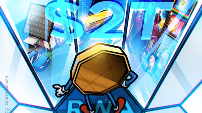 Reaching a $2 trillion market capitalization implies an over 57-fold growth for RWAs in the next three years from their current $35 billion cumulative value, according to data from RWA.xyz.